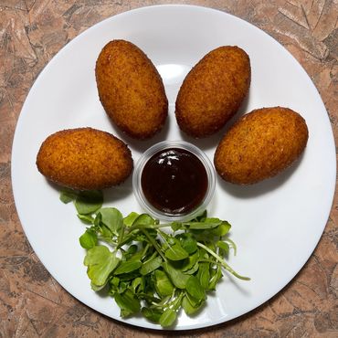 TWO PIECES MADE WITH PREMIUM BULGUR, SPECIAL SPICES, SAUTÉED ALMONDS, SAUTÉED RASINS, PARSLEY, GROUND BEEF & SHREDDED CARROTS. SERVED WITH GLUTEN-FREE BBQ SAUCE.